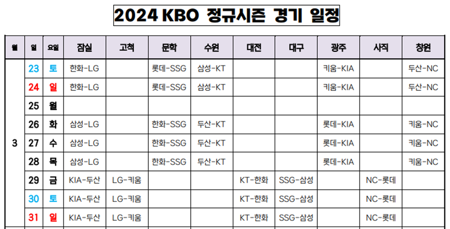 2024년 프로야구 경기일정이 공개되었다.